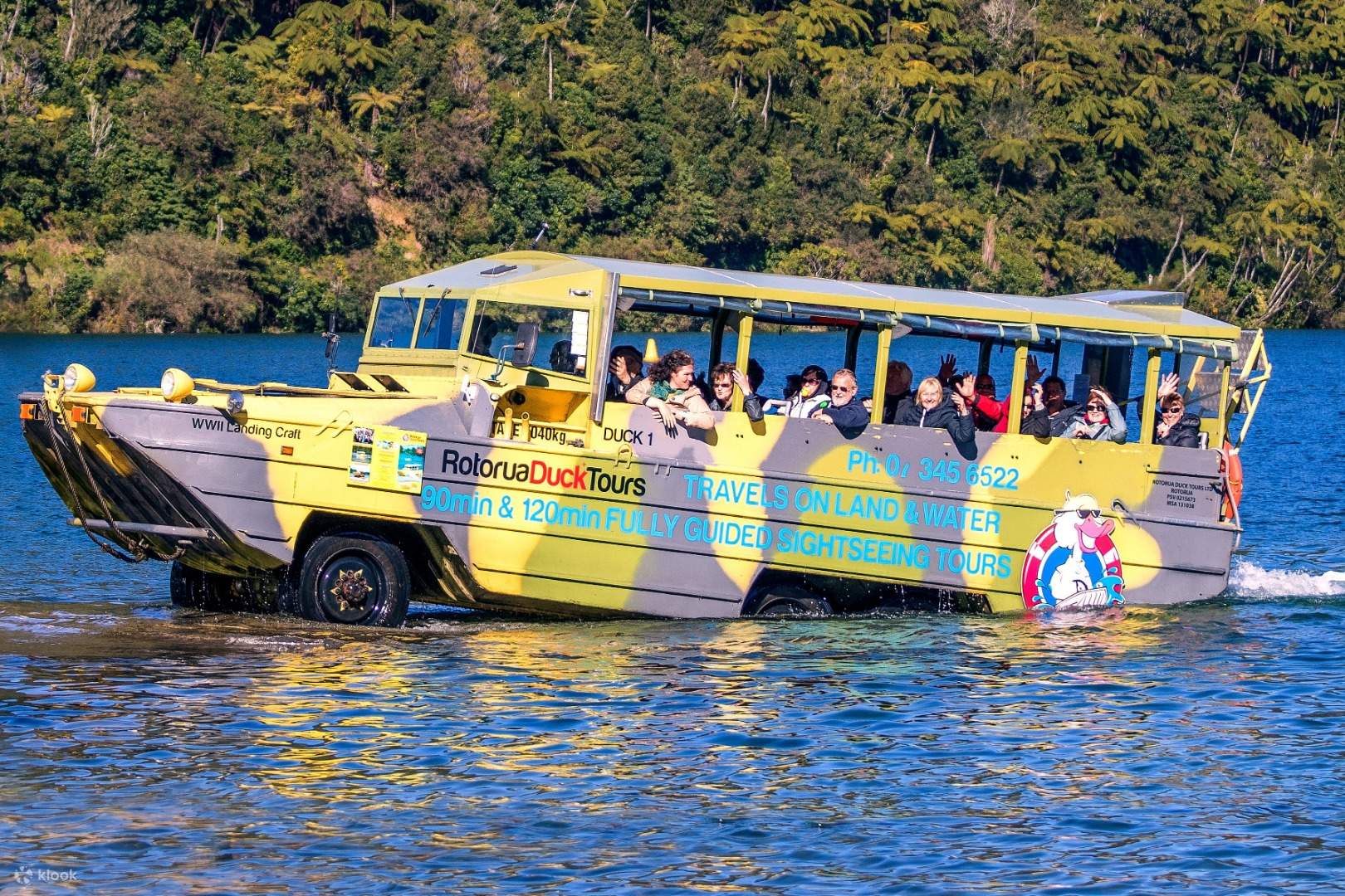 - Trải nghiệm 60 phút đi thuyền Duck tour – một phương tiện xe buýt lưỡng cư, đưa du khách khám phá thành phố Rotorua và hồ Rotorua
