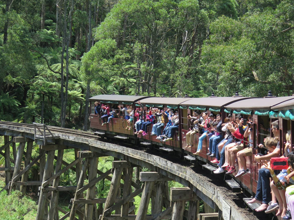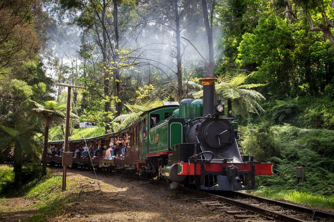thưởng thức phong cảnh tuyệt đẹp trên tàu lửa hơi nước ray đơn Puffing Billy có từ đầu thế kỷ 20.